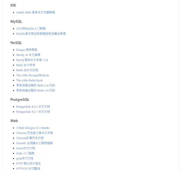 另一种就是学习编程资源整合的项目,这个不难理解,每个人都喜欢整合资源,这样对于我们这些懒人来说,学习起来就相对的很轻松。下面的文章中将会按照部分去整理: