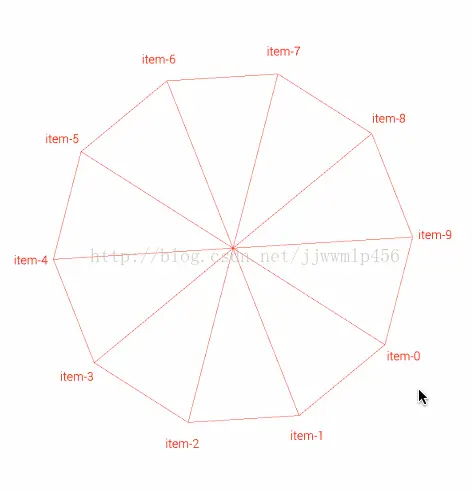 }上面求出了各顶点坐标,保存在points集合中,并从圆心连线到各顶点;那么还需要将各顶点间以直线相连,这个正多边形就完成了
