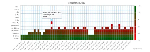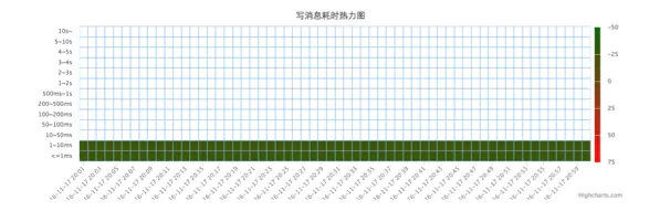RocketMQ通过对上述情况的优化,成功消除了写消息高延迟的情形,并通过了今年双11的考验。优化后写消息耗时热力图如下图所示。
