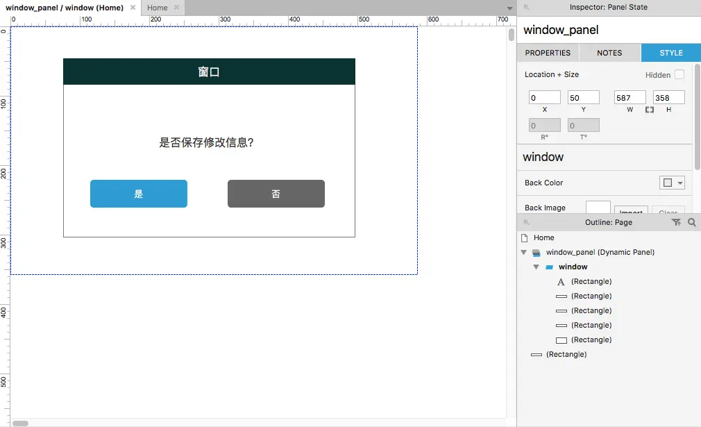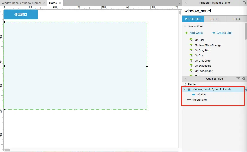 - 然后再在动态面板的window面板中绘制弹窗的原型图,如下