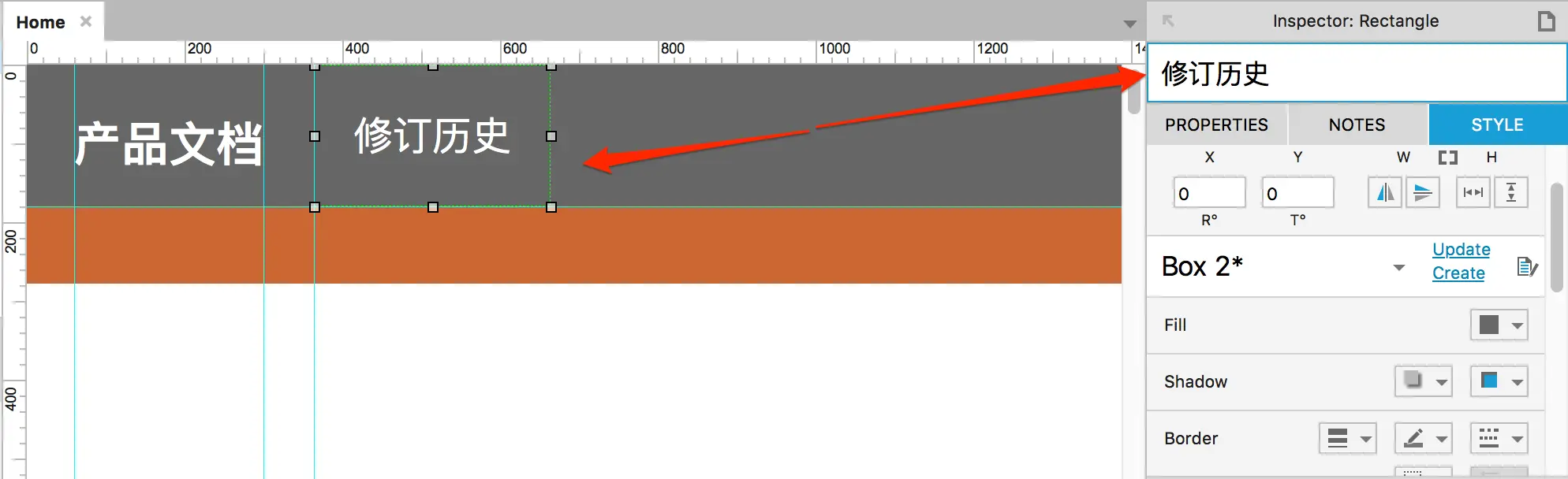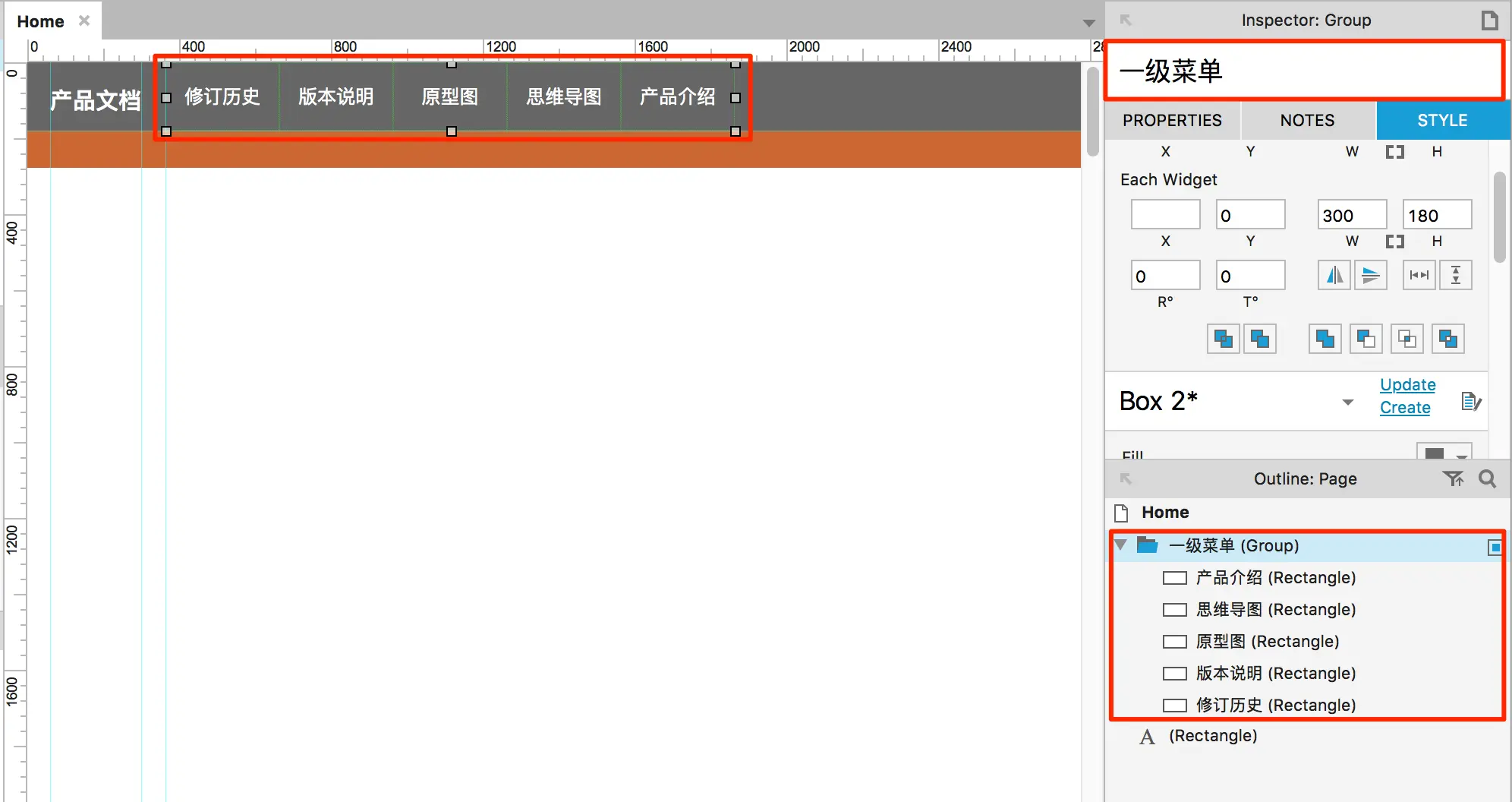 这里首先要绘制一个矩形,然后直接在矩形中编写对应的菜单,然后把矩形的名字修改为菜单对应的文本。如下图所示