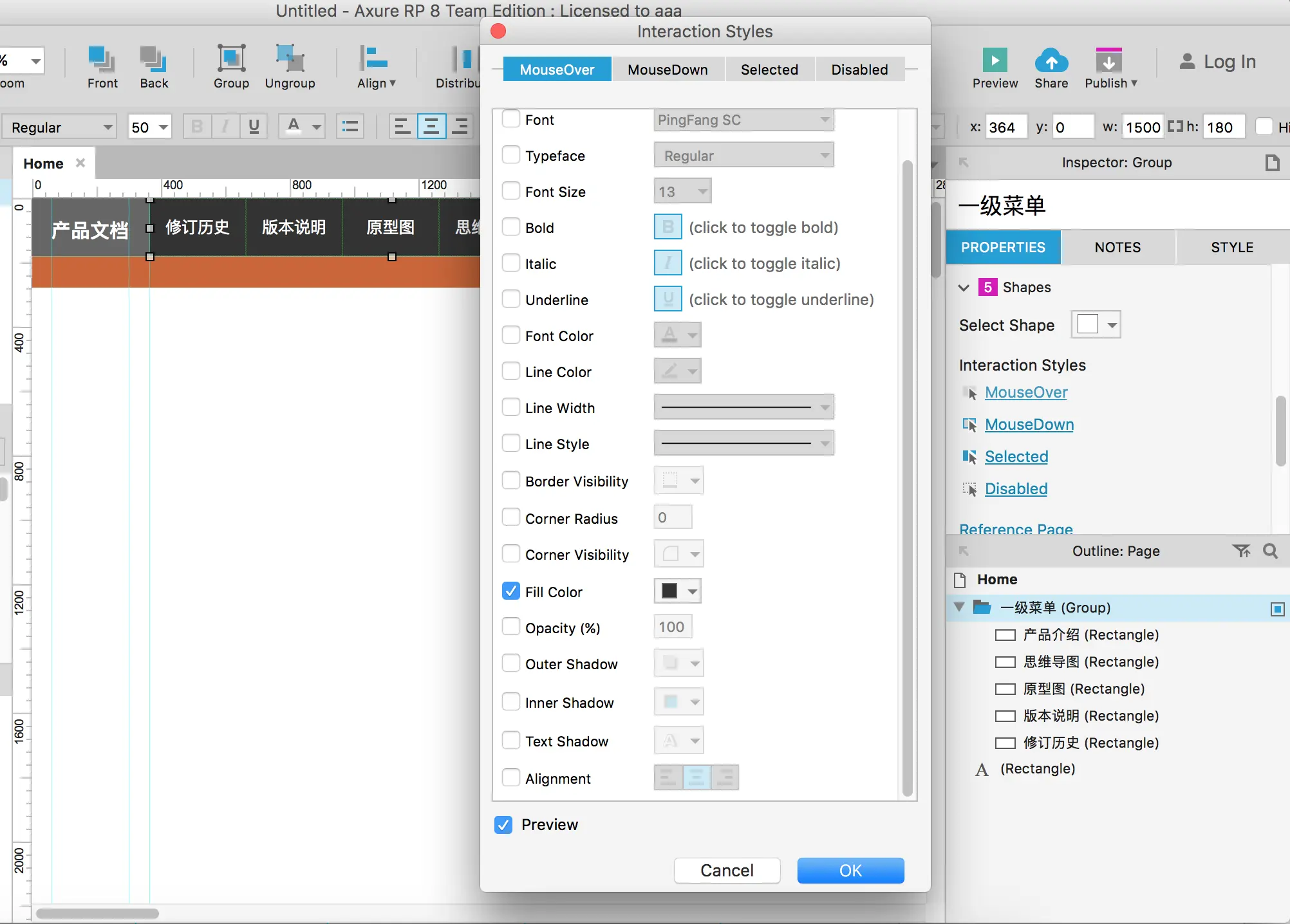 第一次使用Axure Pro 8来编写产品需求文档,有点小鸡冻。主要是参考人人都是产品经理的相关文章Axure制作PRD(产品需求文档)设计教程。然后自己也边研究使用Axure Pro然后边编写产品文档。