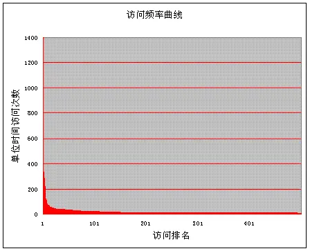 这是一个定性的原则,定量来说,内容访问近似符合Zipf定律(Zipf's law), 这个定律是美国语言学家Zipf发现的,他在1932年研究英文单词的出现频率时,发现如果把单词频率从高到低的次序排列,每个单词出现频率和它的符号访问排名存在简单反比关系: