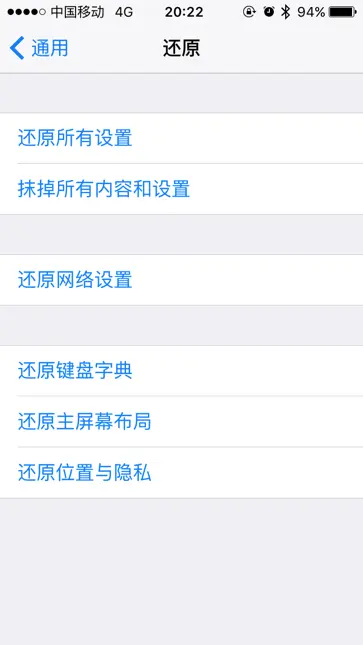 iPhone手机的还原功能,可以在用户出错时将多种功能设置快速还原到原始状态。