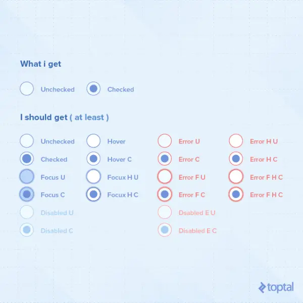 也许其他控件没有 选中/未选中 状态,但可能存在 空/不为空(显示占位符文本)的状态。它们还可能具有更复杂的状态,像是 错误/非错误 或像是 一般/警告/错误/成功。