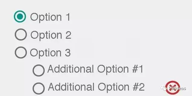 避免嵌套单选按钮和其他单选按钮或复选框。应该把所有选项置于同一层级避免用户困惑。