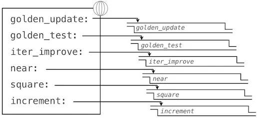 使用golden_update和golden_test参数来调用iter_improve会计算出黄金比例的近似值。