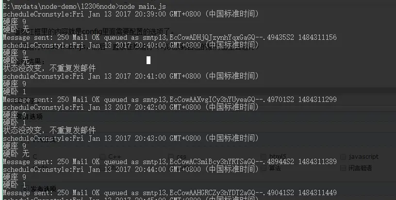 总结一下,我这个如果想用这个买票,你只要配置config,替换里面的邮箱和密码(你自己的邮箱),这样就会收到邮件通知了。