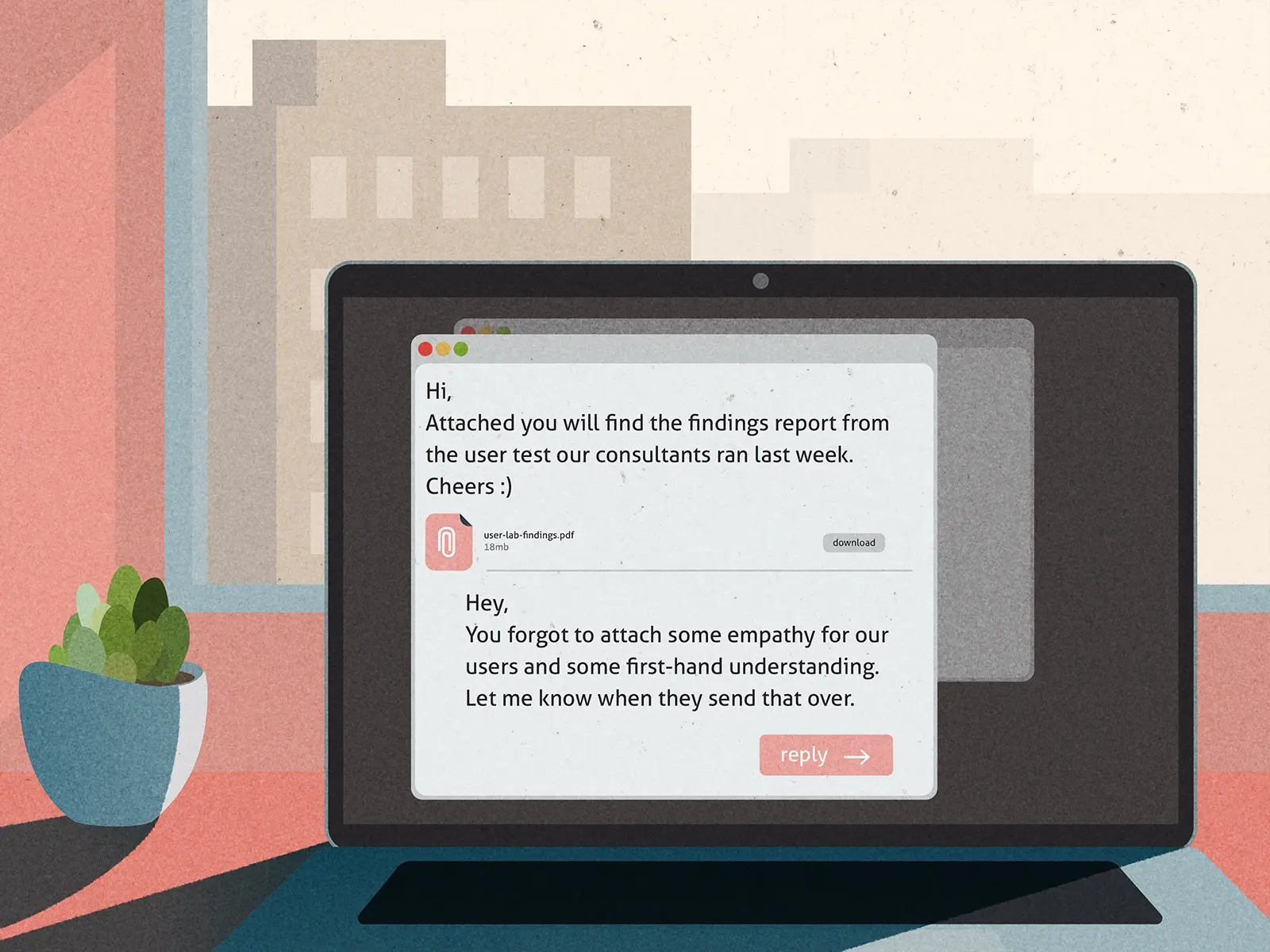 作为设计师,我参与用户研究环节的收获,远比任何经过二次传递的信息更有价值。若不是亲自参与,什么报告都无法向我解释真实用户努力使用产品的动机。即使是设定最完善的用户画像,也无法给我这种同理心,无法与面对面见证真实用户的需求和努力相提并论。