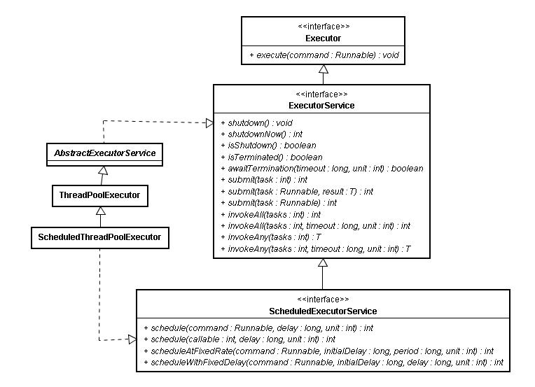 - (2)ScheduleExecutorService 继承了ExecutorService,并增加周期调度的接口;ScheduledThreadPoolExecutor 实现了ScheduleExecutorService,用来管理周期线程池;(本文不介绍)