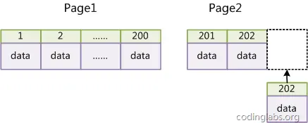 如果表使用自增主键,那么每次插入新的记录,记录就会顺序添加到当前索引节点的后续位置,当一页写满,就会自动开辟一个新的页。如下图所示: