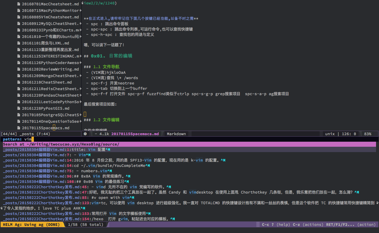 前几天,Github 上的 Spacemacs 已经成功的突破一万 Star, 听说几个我非常佩服的 Pythoner(比如『Python Web 开发实战』的作者董伟明) 也是非常喜欢 Spacemacs, 我就萌生了从 Vim 切换到 Spacemacs 的想法,说做就做。