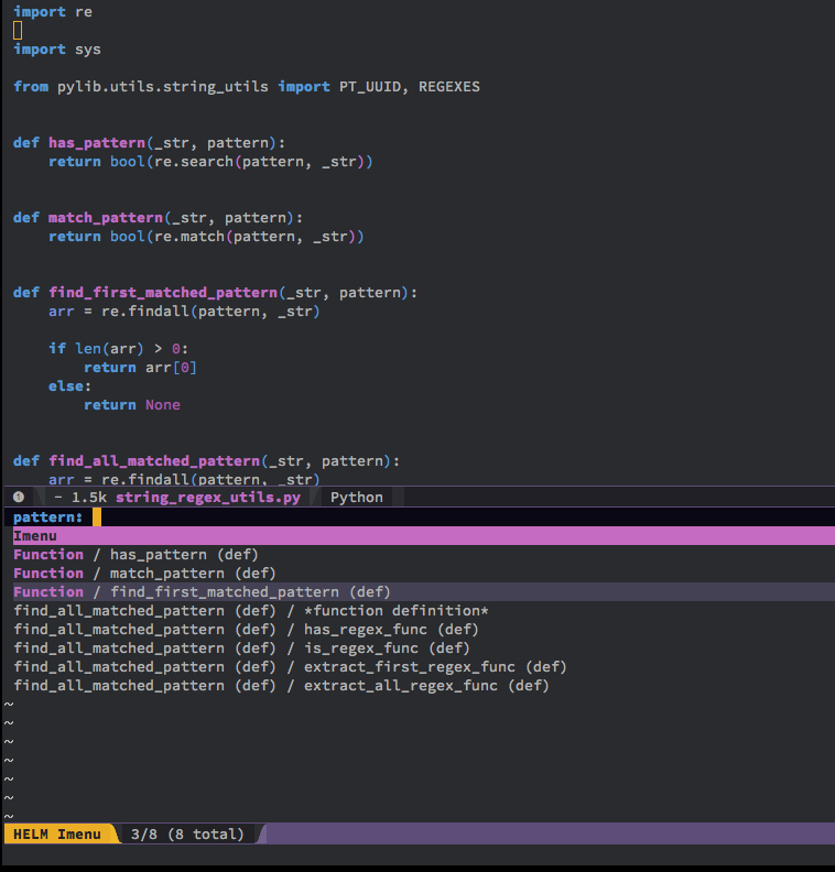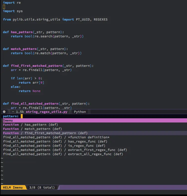 搜索项目如图 (spc-b-i 开启 buffer imenu ,enter 跳转):