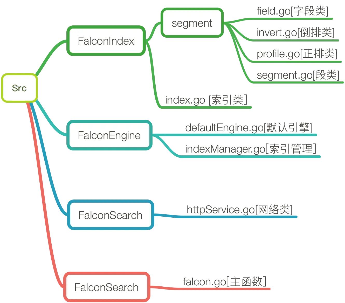 代码托管在github上,地址是github.com/wyh267/Falc…,代码还在不断更新中,目前代码量,去掉单元测试文件,大约是6000行,因为是想到哪写到哪,有些函数也没有用,所以还有优化空间,也希望大家提交你的patch,后面讲的时候可以对照代码看看。