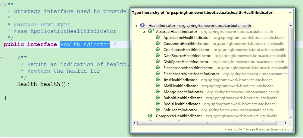 }此外,我们还可以通过继承 AbstractHealthIndicator 类,创建一个检测器类。