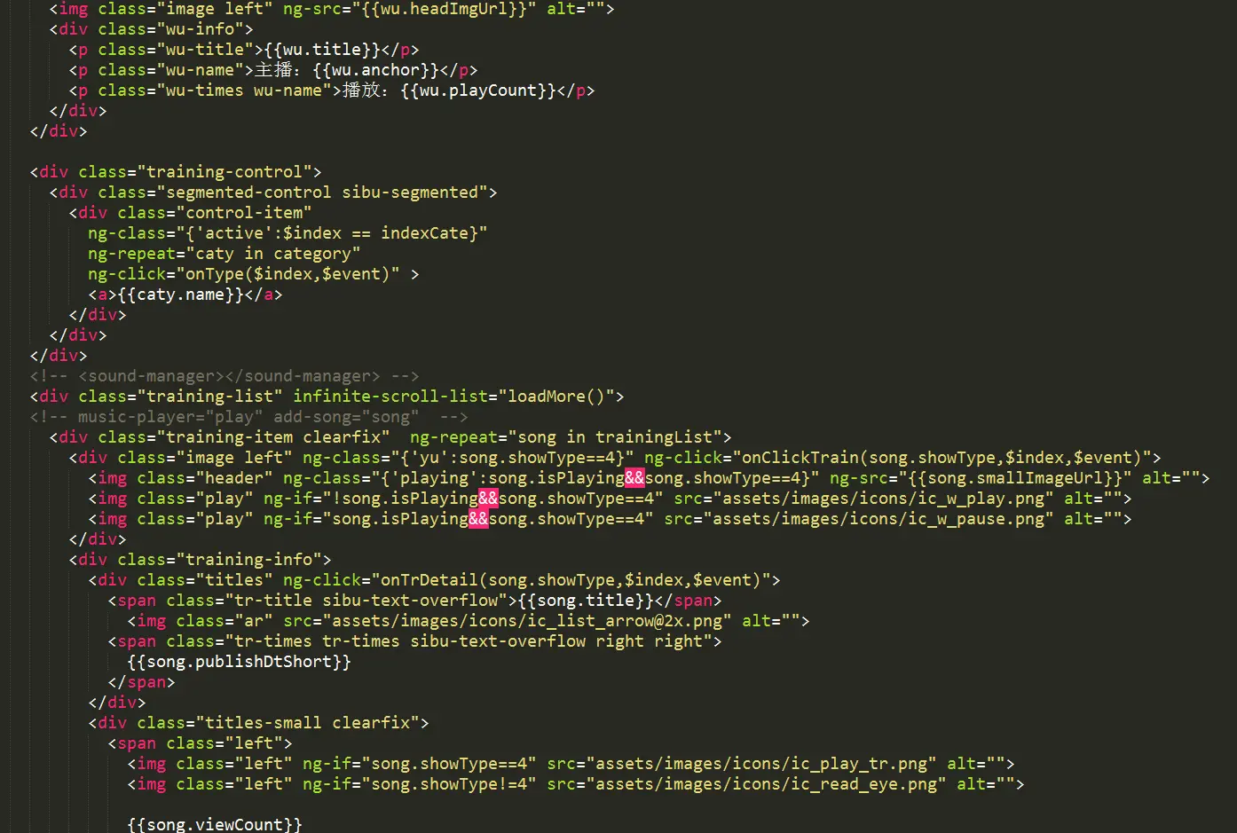 - 首先为什么要强调必须呢!因为曾经自己有一段时间一直在维护别人前期已经搭建好的项目结构,所以那个时候才能理解为什么注释这么重要,首先来一张我曾经修改别人html代码结构模板图;