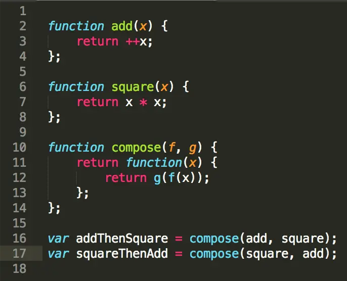 函数组合指把多个函数通过嵌套的方式,把函数作为入参传入,把函数作为返回值传出,组合成为一个全新的函数,形成管道数据流。