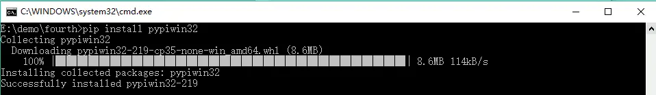 安装关联模块pypiwin32,在命令提示符窗口直接输入命令: pip install pypiwin32 回车