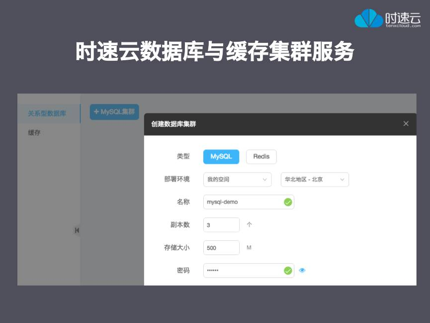 第二点是简单介绍一下时速云提供的有状态集群服务:数据库与缓存 。