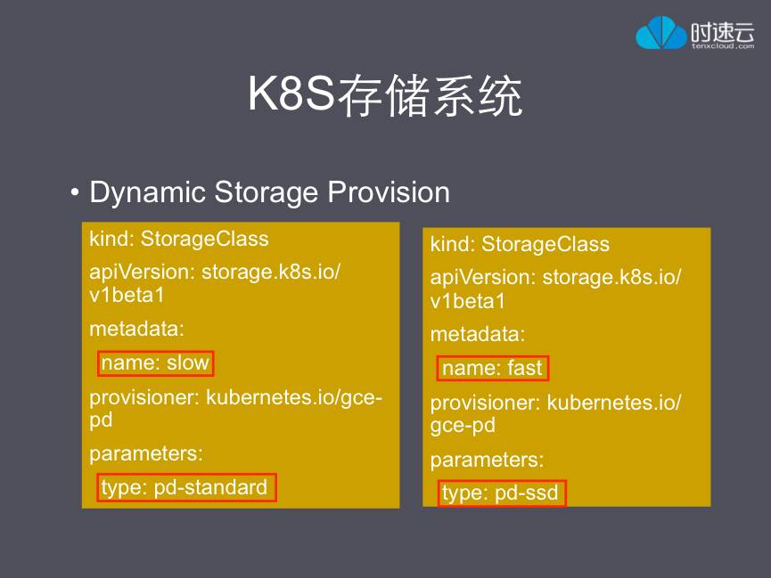 在PVC里通过annotation指定了storage class的名字为fast,这样这个PVC就会绑定一个SSD,而不会绑定一个普通的磁盘。