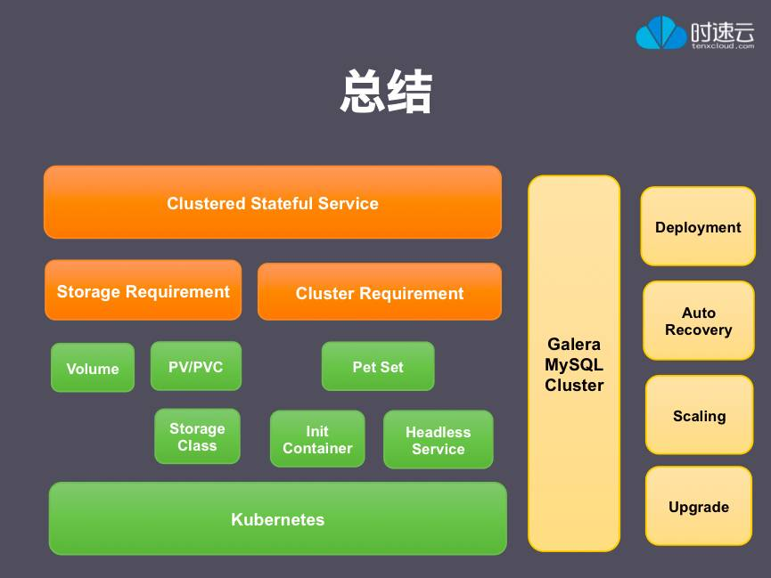 最后我们以MySQL集群为例,说明了如何在Kubernetes上部署和运行一个有状态集群服务。