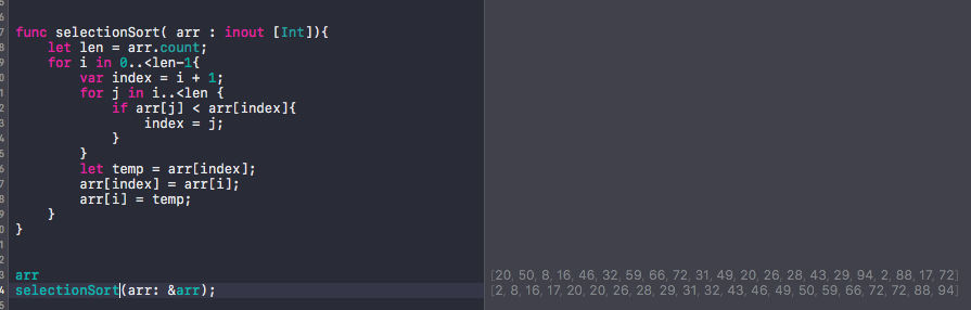 - 在未排序的数据中,找到最小(最大)的跟第一个数据交换位置。