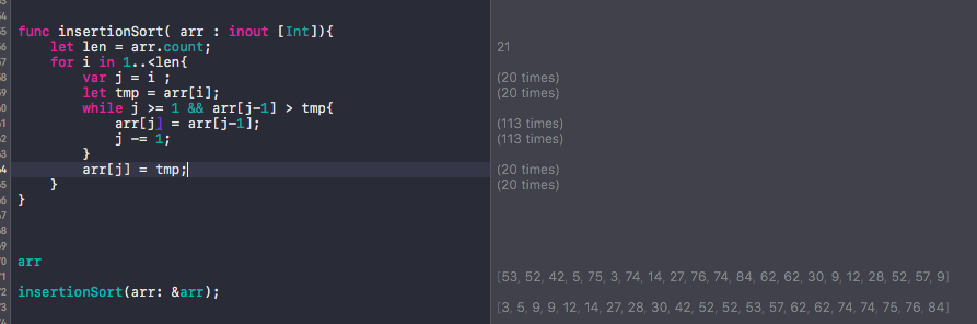 - 以第一元素为已经排序,开始重复步骤1,2直到排序完成