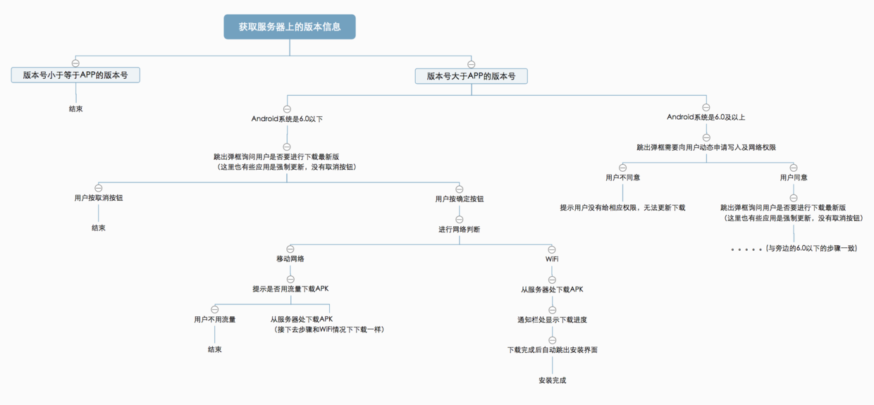 - 6.0以下系统,不需要请求权限,直接下载新版本的app