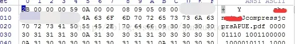 上图便是Jcompress的一个压缩文件用winhex打开后的部分截图。右边红色涂掉的部分便是笔者的姓名,紧接着是软件名Jcompress,后缀jcprs,原始文件名APUE.pdf。注意16进制最开始的两个long 型数据2B 00 00 00和59 0A 00 00分别代表着length_of_header1和length_of_header2. 但是他们都是以小端的方式存储的,其实际的值分别是00 00 00 2B和00 00 0A 59.有兴趣的读者可以下去了解下处理器的大端、小端存储方式