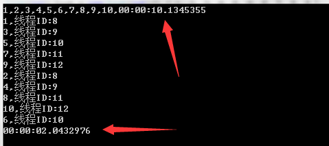 Console.WriteLine(i + ",线程ID:" + Thread.CurrentThread.ManagedThreadId);