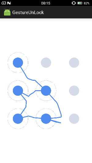 用一个StringBuilder对象保存用户的输入数据,当用户手指抬起来时对比输入的内容与正确的密码,并告知用户。那么如何采集用户的输入呢?我们在点击圆或者划过某个圆的时候将圆的下标采集。