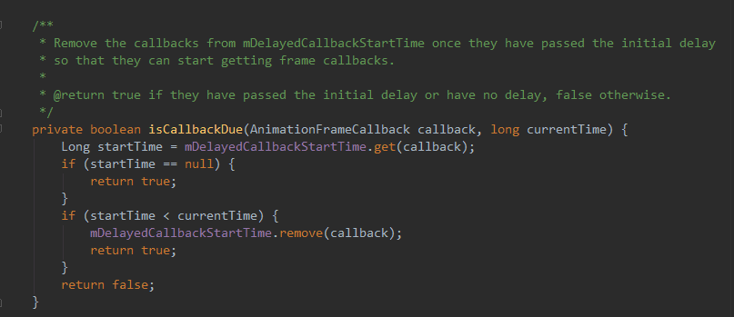 AnimationHandler的mFrameCallback()中调用了private void doAnimationFrame(long frameTime);