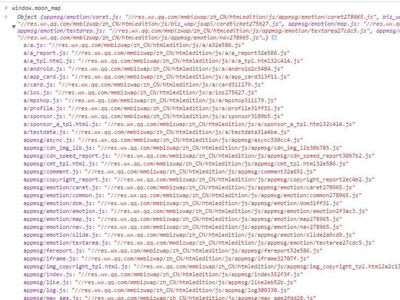 可以看出,微信使用的是自己开发的脚手架moon.js,在这个网页中的实际文件名是moon32ebc4.js