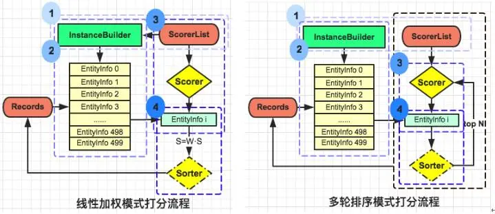 multi:多轮排序模式, 每轮指定Scorer, 仅对前一轮的top N进行排序。
