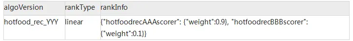 对于单一模式, 仅有一个Scorer, 且不存在混合情况, 所以只要简单对Scorer的打分进行排序即可, 故在此不做详细展开。ABTest配置格式如下表: