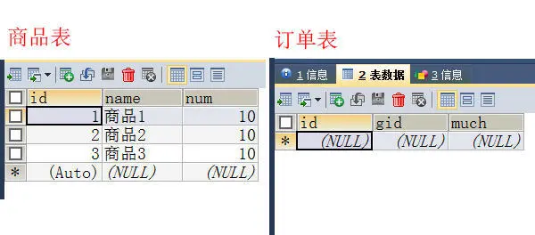 我要下一个3个商品1的订单,需要两步走,插入一条数据到订单表,更新商品表中的商品1的num列。