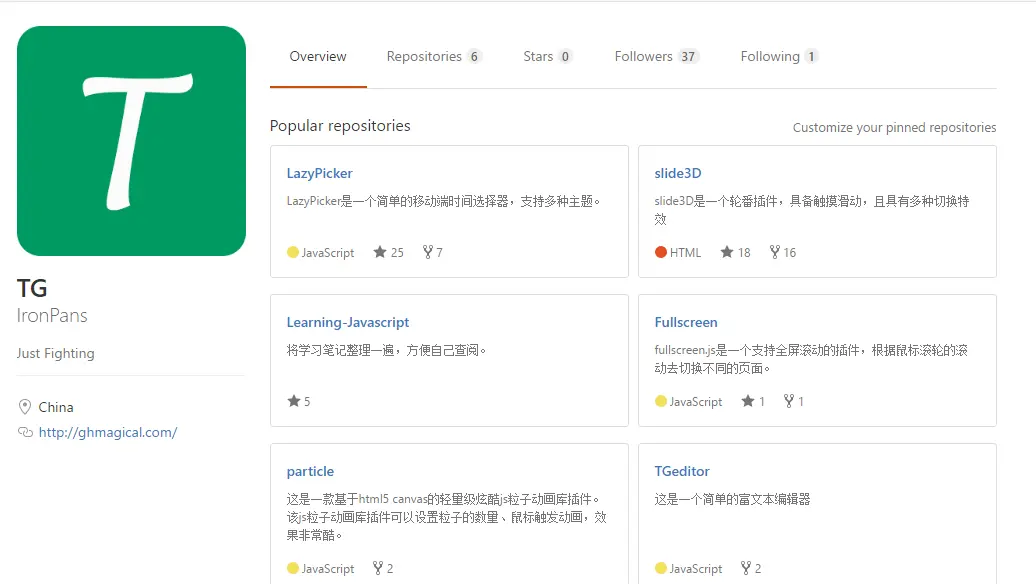 2016年8月初,在尘封已久的Github(以前也有申请过一个,不过没怎么用,索性抛弃后重新建立一个)上传了几个小东东: