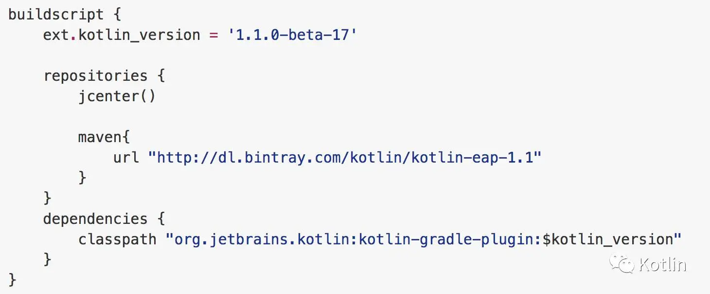 如果你用 gradle 或者 maven 构建自己的工程,那么你需要添加插件仓库:http://dl.bintray.com/kotlin/kotlin-eap-1.1,选择 Kotlin 的版本为 1.1.0-beta-17 即可。