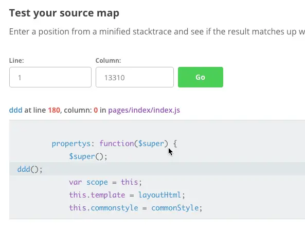 5 var numInfo = consumer.originalPositionFor({ line: 1, column: 13330 })