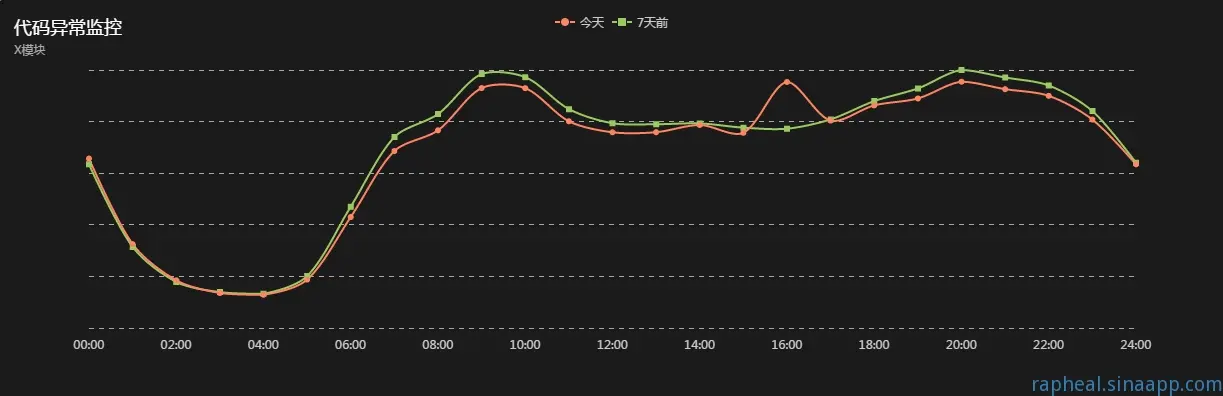 这里将上一周的错误数与本周做对比,如果没有大的迭代,稍微有异常就会产生报警,一般来说用户才是最好的测试,上线后没有报警就没有BUG。