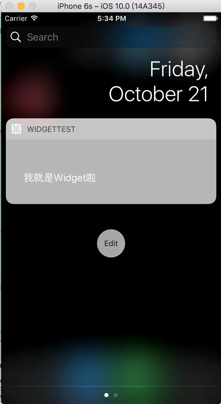 运行后就可以看到了,可以将target直接选成widget,在iOS10上这么写没问题,但在之前的版本,可能要在上段代码后面追加下面一句,高度自定义