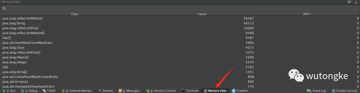 安装后需要重启android studio,重启后就会发现多了一个Memory View。