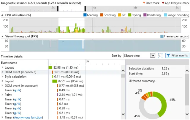 在 IE 中这个功能被放置在了 UI Responsiveness 面板中: