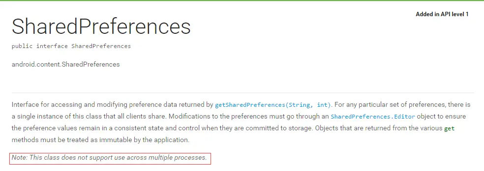 当然SharedPreferences是个特例,它通过键值对方式存储数据,在底层上采用xml文件来存储键值对,一般情况每个应用的SharedPreferences文件目录位于/data/data/package name/shared_prefs目录下.从本质上来说SharedPreferences也是属于文件的一种,但是由于系统对它的读写有一定的缓存策略,所以内存中会有一份SharedPreferences缓存,而在多进程模式下,系统对他读写变得不可靠,当高并发时候有很大几率丢失数据,因为,在多进程通讯的时候最好不要使用SharedPreferences.