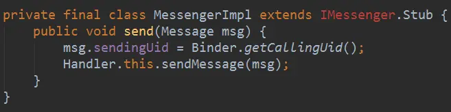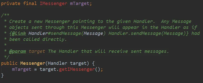 private Messenger mMessenger = new Messenger(new MessengerHandler());
