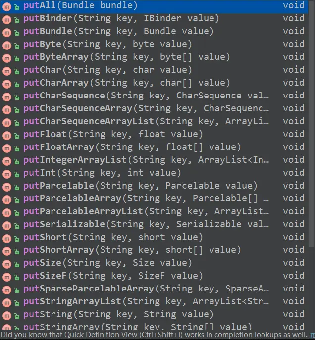 四大组件中的三大组件(Activity,Service,Receiver)都是支持在Intent中传递Bundle数据的,由于Bundle实现了Parcelable接口,所以他可以方便在不同进程间传输,所以在我们开启另一个进程的Activity,Service,Receiver时候,就可以使用Bundle的方式来,但是有一点需要注意,我们在Bundle中的数据必须可以被序列化,比如基本数据类型,实现了Parcelable接口的对象,实现了Serializable接口的对象等等,具体支持类型如下