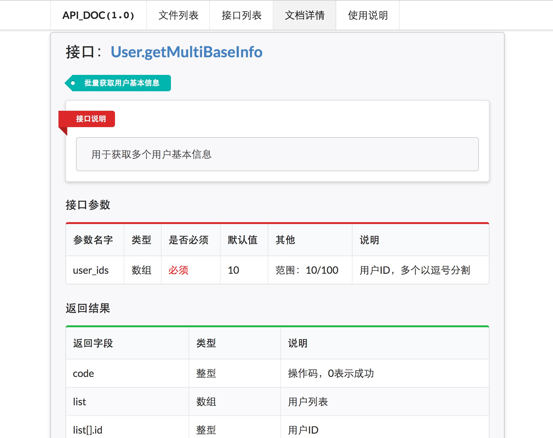 可在线实时查看API接口的参数、返回和说明,无须手动维护文档。