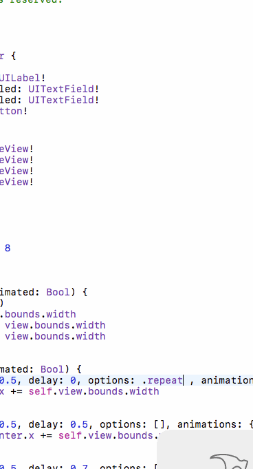 UIView.animate(withDuration: 0.5, delay: 0, options: .repeat , animations: {