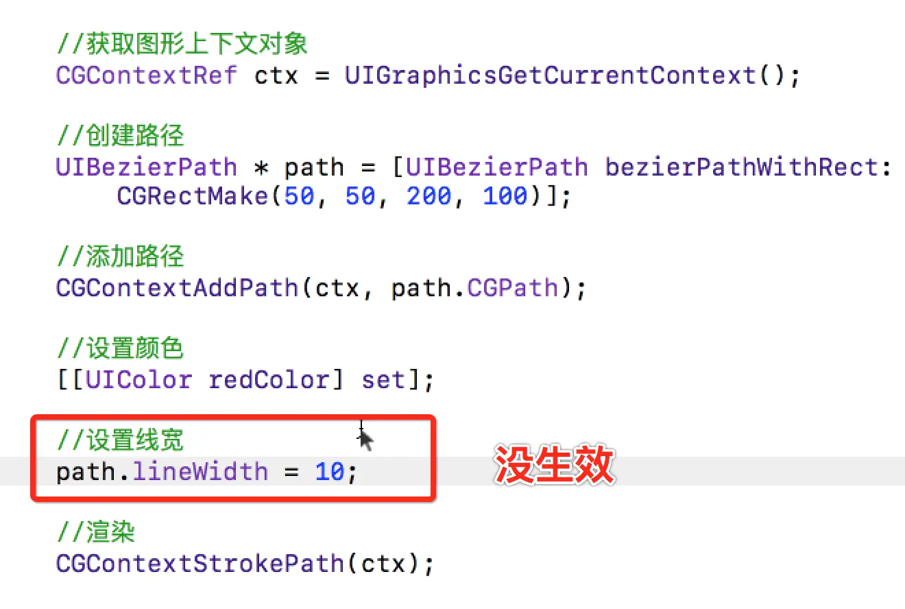 - C和OC绘制图形的时候,如果混合使用,以C语言为主。