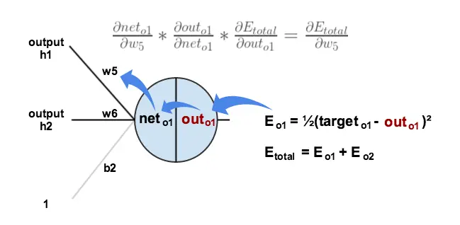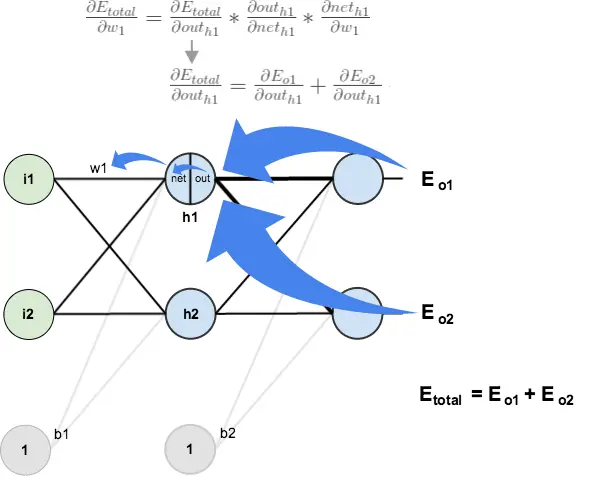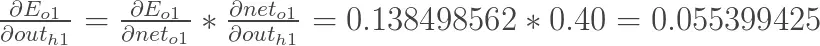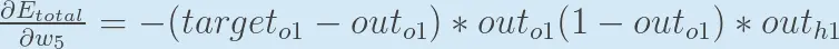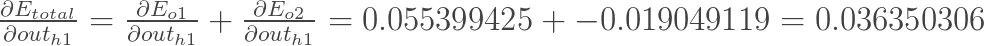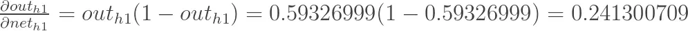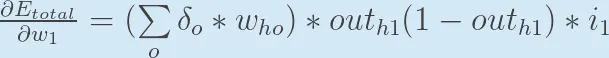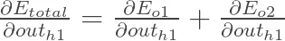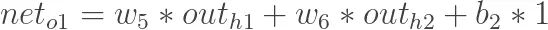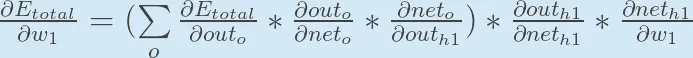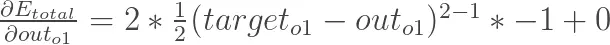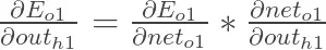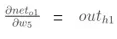 out_h1将同时影响out_o1和out_o2(为方便表示,这里用下划线表示下标,下同)。因此out_h1对每个输出神经元的影响: